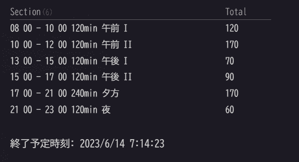dv.paragraph(`終了予定時刻: ${finishTime.toLocaleString()}`);入力部分